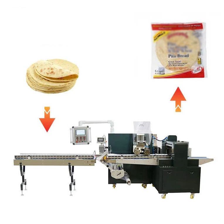 Customized Arabic Pita Bread Packaging Machine, Automatic Pizza and Tortilla 3/4 Side Sealing Film Packaging Machine