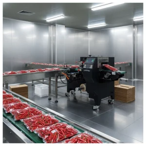 Customized Green and Red Pepper Packaging Machine, Automatic Servo Bottom Film Rotating Knife Pillow Type Packaging Machine
