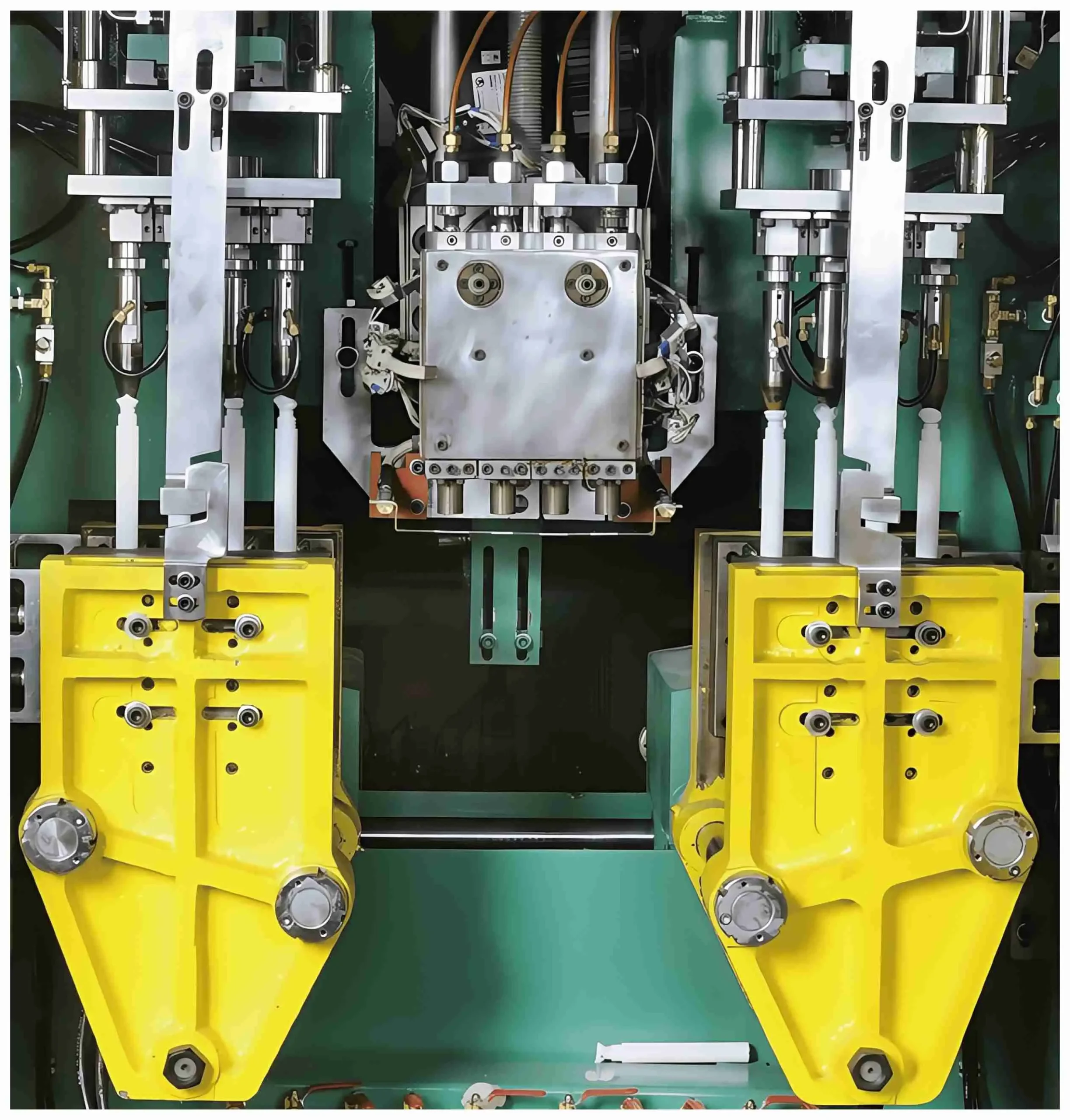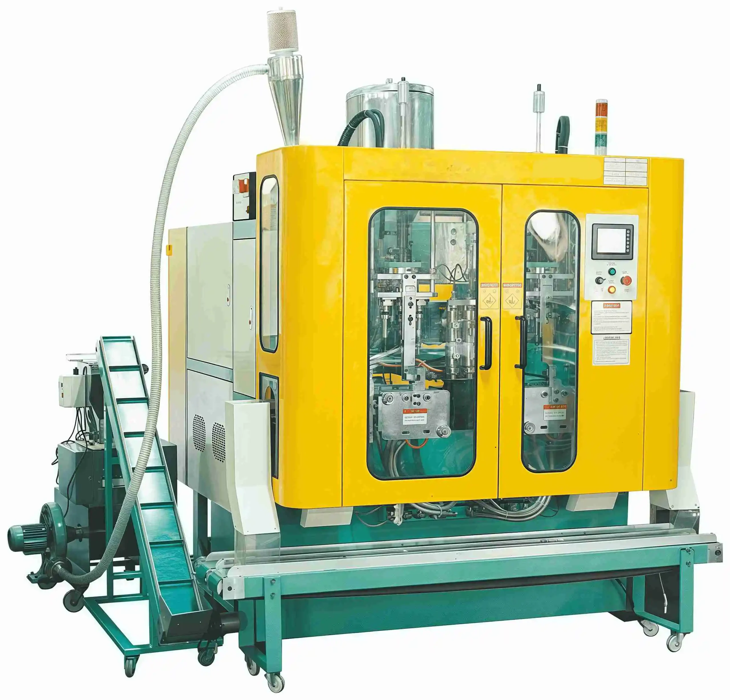 This model is the smallest blow molding machine, characterized by its small size, high speed, stability, and energy efficiency. It can be equipped with automatic bottle neck degreasing devices, rotary bottle neck cutting devices, conveyor belts, and automatic crusher systems. Single-die, double-die, triple-die, quadruple-die, and six-die head options are available, with a daily output (24 hours) of approximately 20,000-120,000 units; it can produce plastic hollow products ranging from 0.01 to 1.8 L.