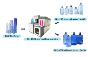 This semi-automatic single-cavity PET blow molding machine is suitable for producing PET plastic bottles of various shapes.