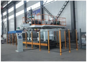 The machine can be designed to produce various models ranging from 20 liters to 20,000 liters, each with a different production range. It can also produce a range of hollow blow-molded products, including outdoor tabletops, plastic pallets, septic tanks, road barriers, traffic cones, sea floats, and large open buckets.