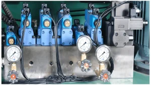 The entire oil system, including the oil pump, oil circuit board, pressure-flow proportional valve, combined with a nitrogen storage system and a unique oil filtration system, has been selected from the American brand Vickers. This ensures advantages such as fast speed, smooth deceleration, no impact, low noise, energy saving, and long service life of the oil circuit.