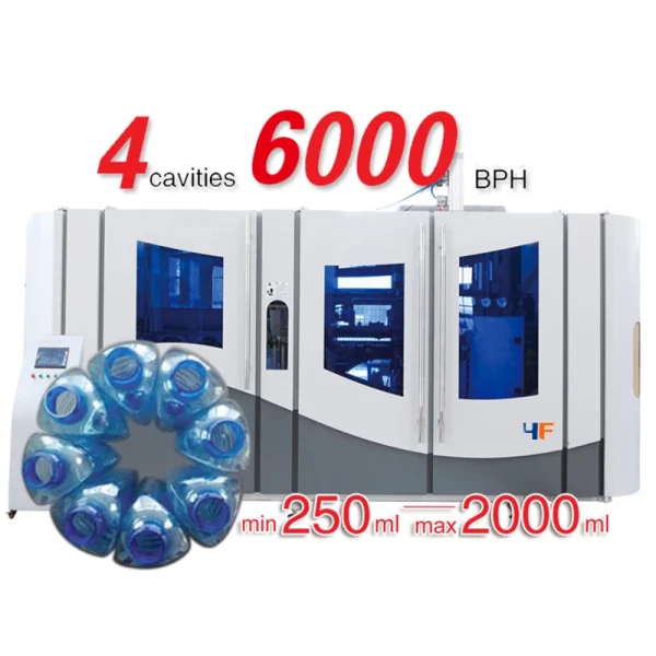 The high speed PET blow molding machine professionally produced by adopts an energy-saving design. The mechanical part is compact and reasonable. This series of blow molding machines have a fault alarm and diagnostic system to make maintenance more convenient;